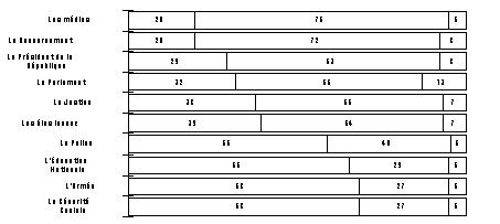 contre 63%), le Gouvernement (20% contre 72%) et les médias